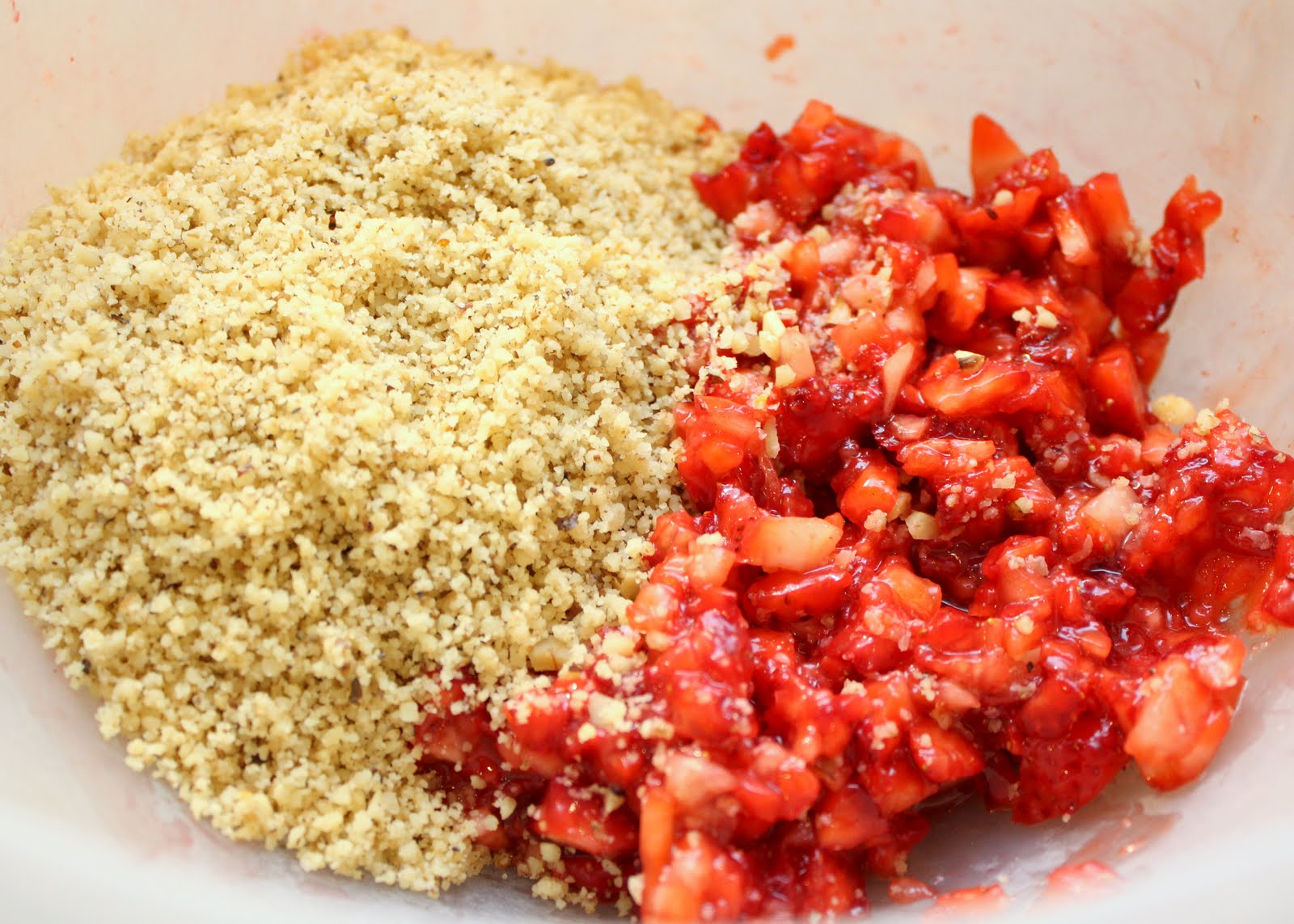 Oh well, enough about presentation, on to taste. This is an awesome recipe. It’s one of the hundreds my mom has collected over years and years, and is not exactly what you would expect. It’s both nutty and fruity. I prefer walnuts, so that is what I used instead of pecans, and I don’t put nuts in my cake, just the frosting. To me, it is way to overpower if there is nuts both in the cake and in the frosting, just nobody tell my mom I said that 😉But that is just a personal preference. Either way this recipe is so super yummy. If you don’t care for nuts, your probably not going to want to try this recipe. But if you like strawberries and you like nuts, the flavor together is one that does not disappoint. Enjoy and I hope y’all have an amazing Easter!!